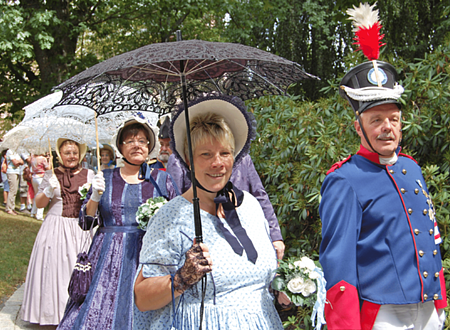 Machen Sie eine Zeitreise und lassen Sie sich in die Zeit des Biedermeiers zurückversetzen. Eine Gruppe Geschichtsbegeisterter flaniert in historischen Gewändern des 19. Jahrhunderts durch den Kurpark. Genießen Sie den Anblick der aufwändig gestalteten Kostüme.In Verbindung mit dem romantischen Flair des Kurparks entfaltet das Flanieren seine ganz besondere Wirkung.