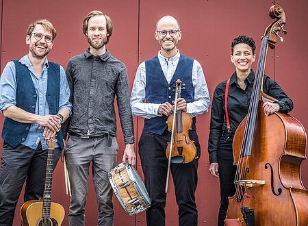 10Saitig & Band Irish Folk - Klezmer - Gypsy Jazz - Liedermacher - Weltmusik Benjamin Haupt (Gitarre/Gesang),Thomas Buffy (Violine), Sabrina Damiani (Kontrabass) & Daniel Feldmeier (Schlagzeug), Von sanft verträumt bis virtuos fetzig, von klassisch bis jazzig, von Celtic Folk bis Klezmer und Weltmusik – Mit dem Gitarristen & Songwriter Benjamin Haupt und demGeiger ...