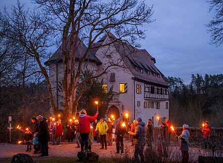 Treffpunkt ist um 17.00 Uhr der Vorhof der Burg Rabenstein, wo Sie mit Glühwein empfangen werden. Nach ca. 10minütiger geführter Fackelwanderung erreichen Sie die Sophienhöhle, deren unterirdischer Tropfsteinpalast mit dem Sonderprogramm „Sophie at night“ auf Sie wartet. Im Anschluss servieren wir im Markgrafensaal und Jagdzimmer der Burg ein herzhaftes ...