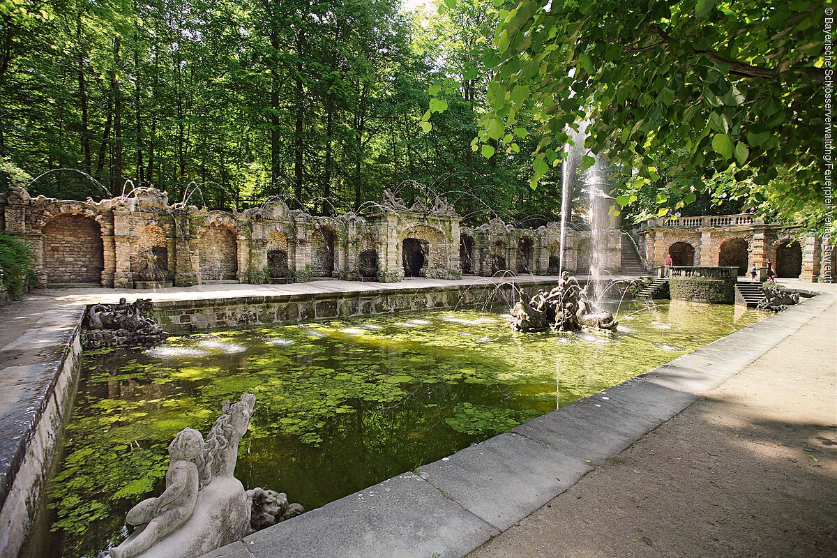 Die aufwendigen und prachtvollen Wasserspiele, insbesondere in der Grotte des Alten Schlosses und im Oberen Bassin sind nicht nur wunderbar anzusehen, sondern auch wegen der bis heute funktionstüchtigen Originaltechnik – ohne Strom und Pumpen – bekannt. Nachdem wir die Wasserspiele in der Schlossgrotte bewundert haben, wollen wir ihnen auf den Grund gehen: Wo kommt das ...